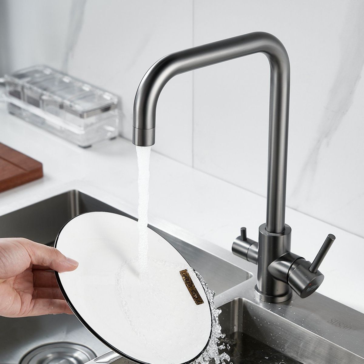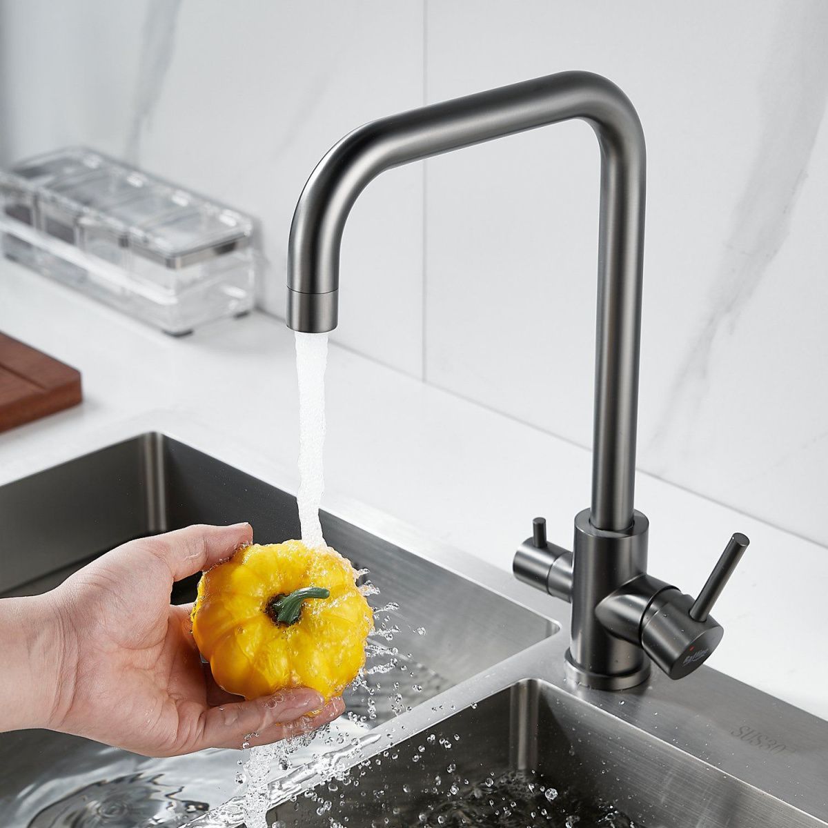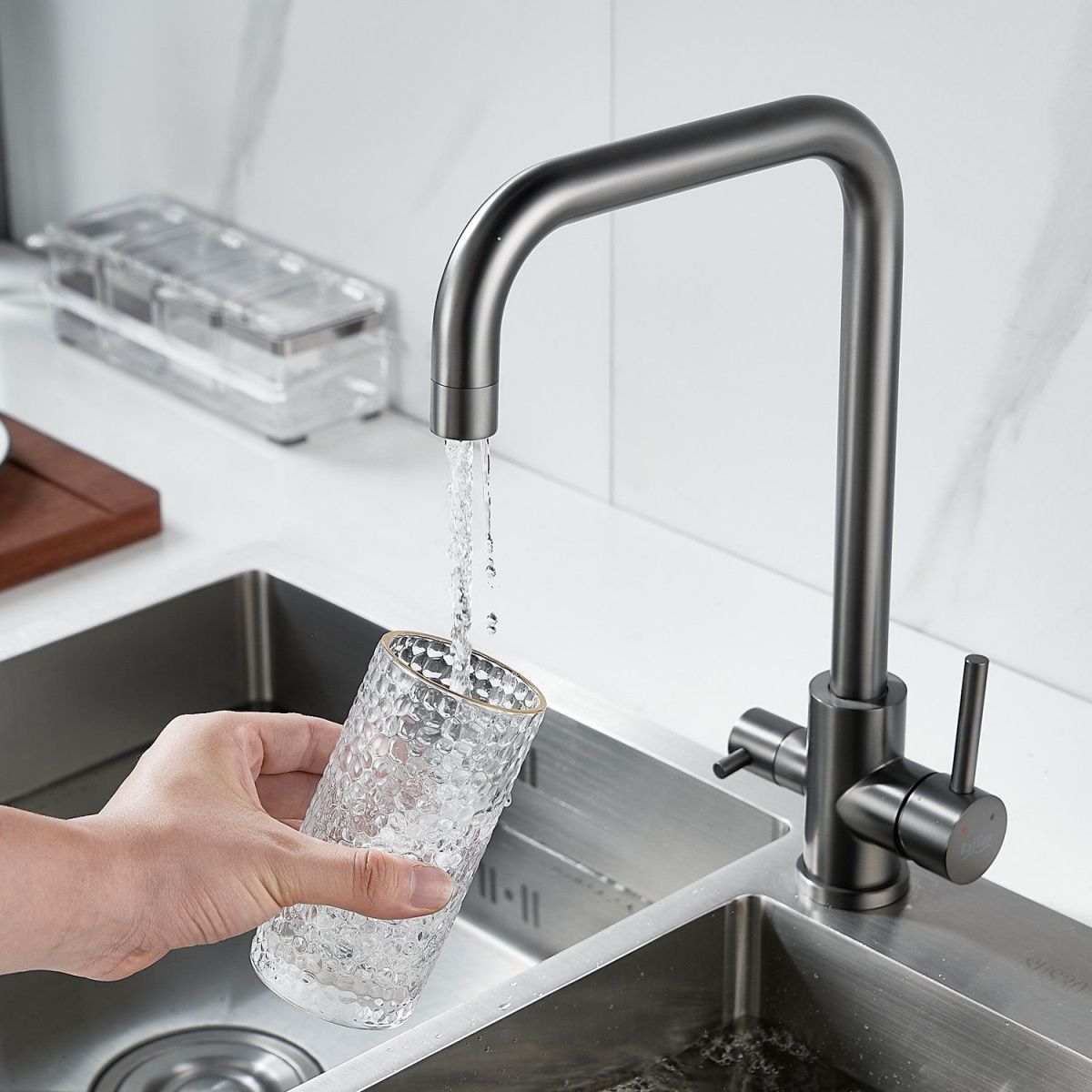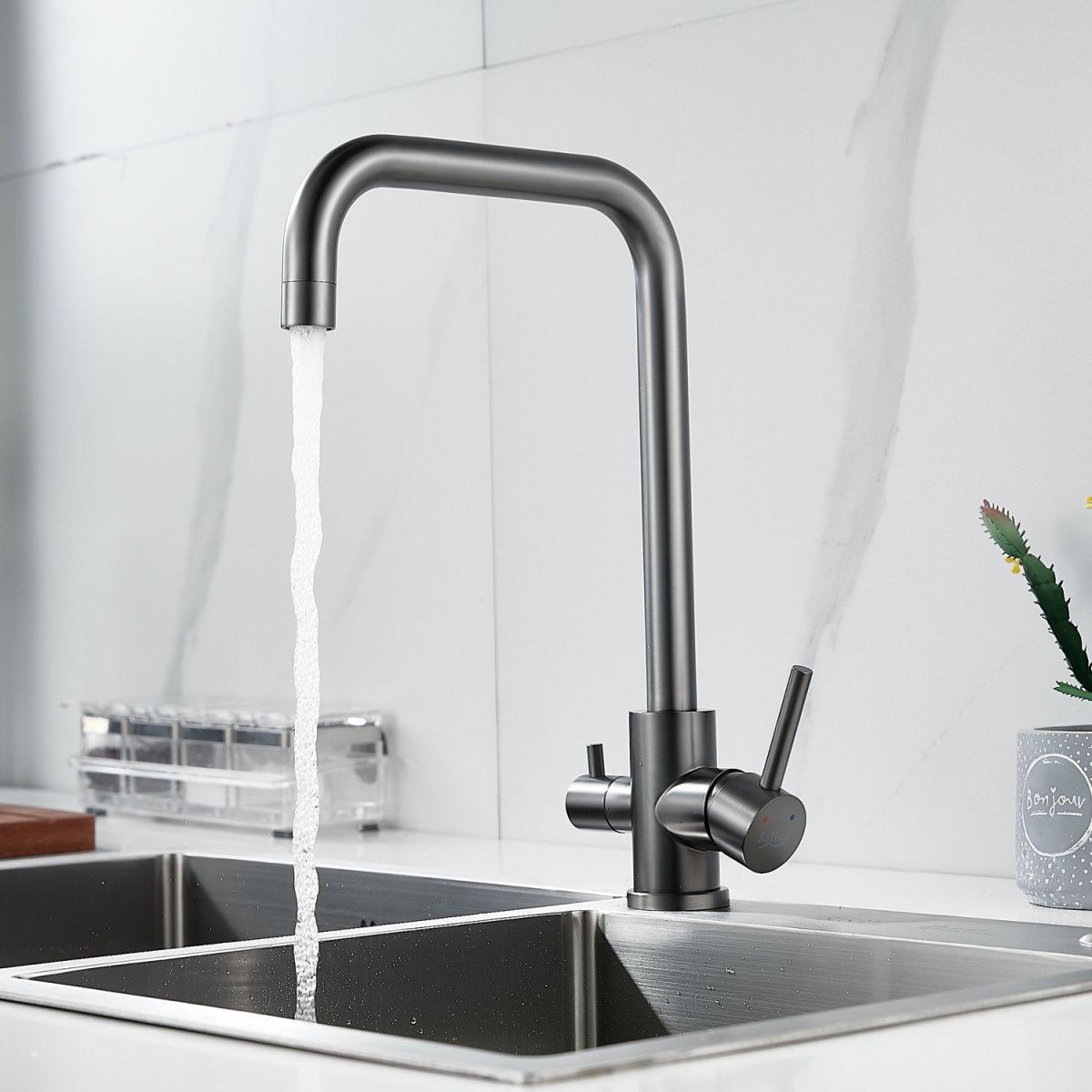 —Смеситель для кухни Raffine F118T на мойку оружейная сталь