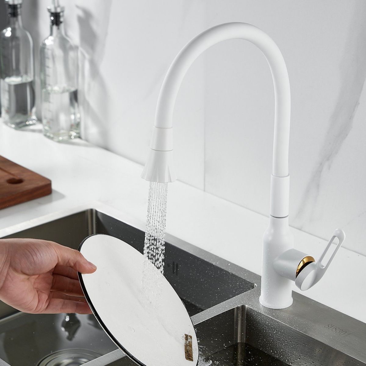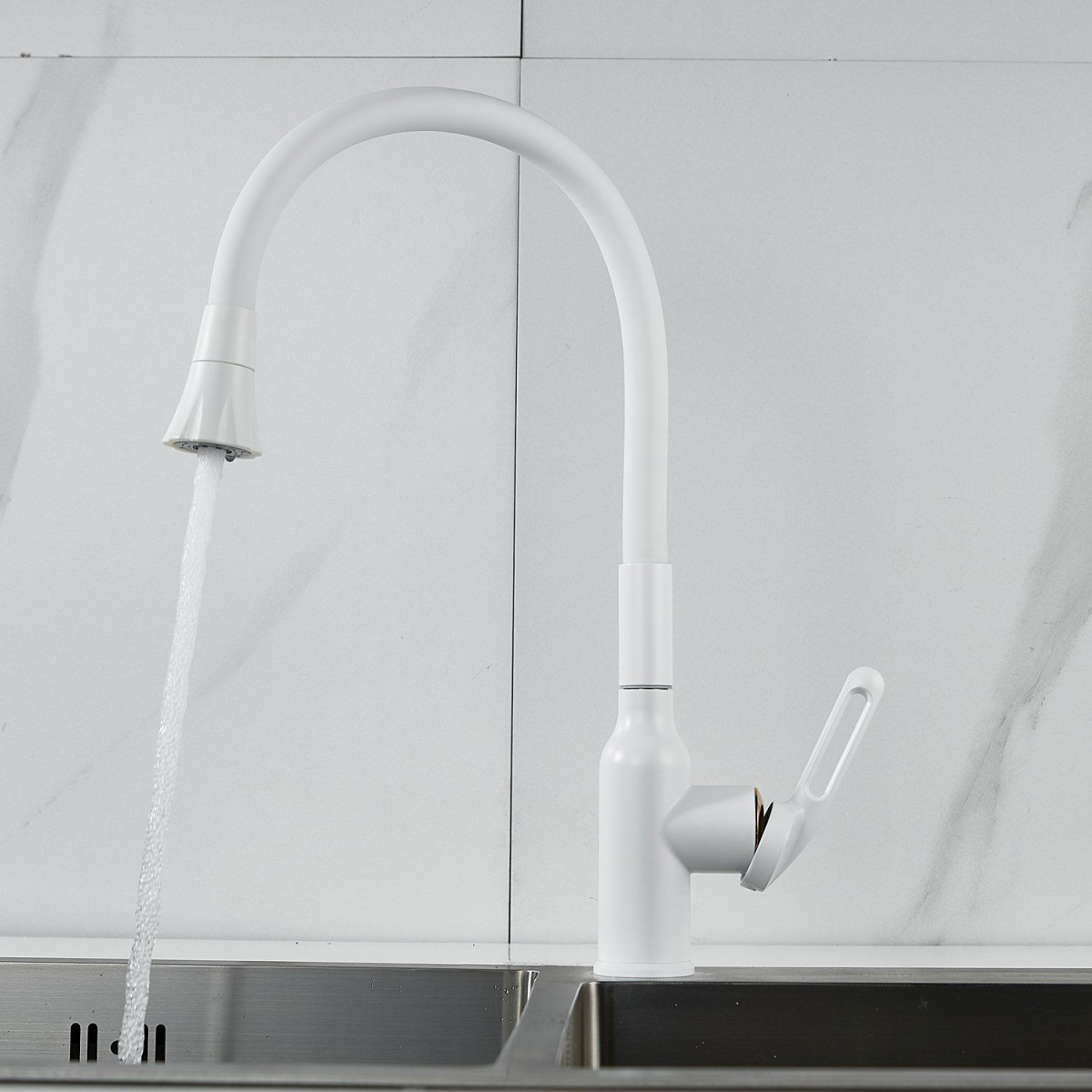 —Смеситель для кухни Raffine F303C-1 на мойку белый
