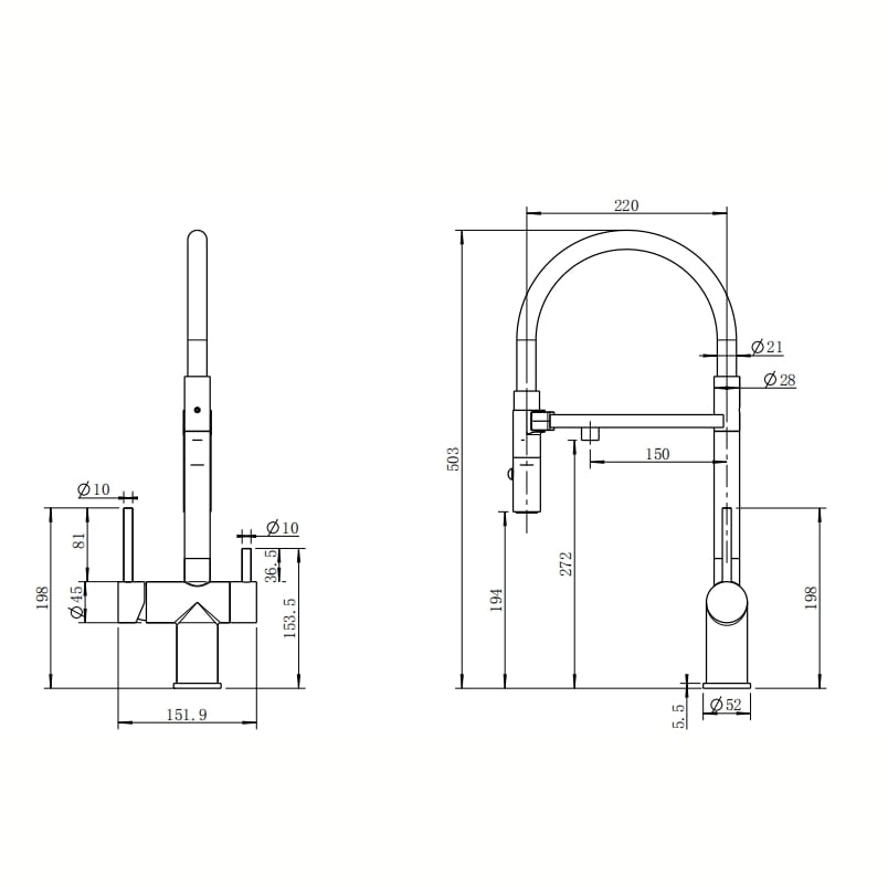 • Излив: гибкий, поворотный, навесной на магните,Совмещенный излив для питьевой воды