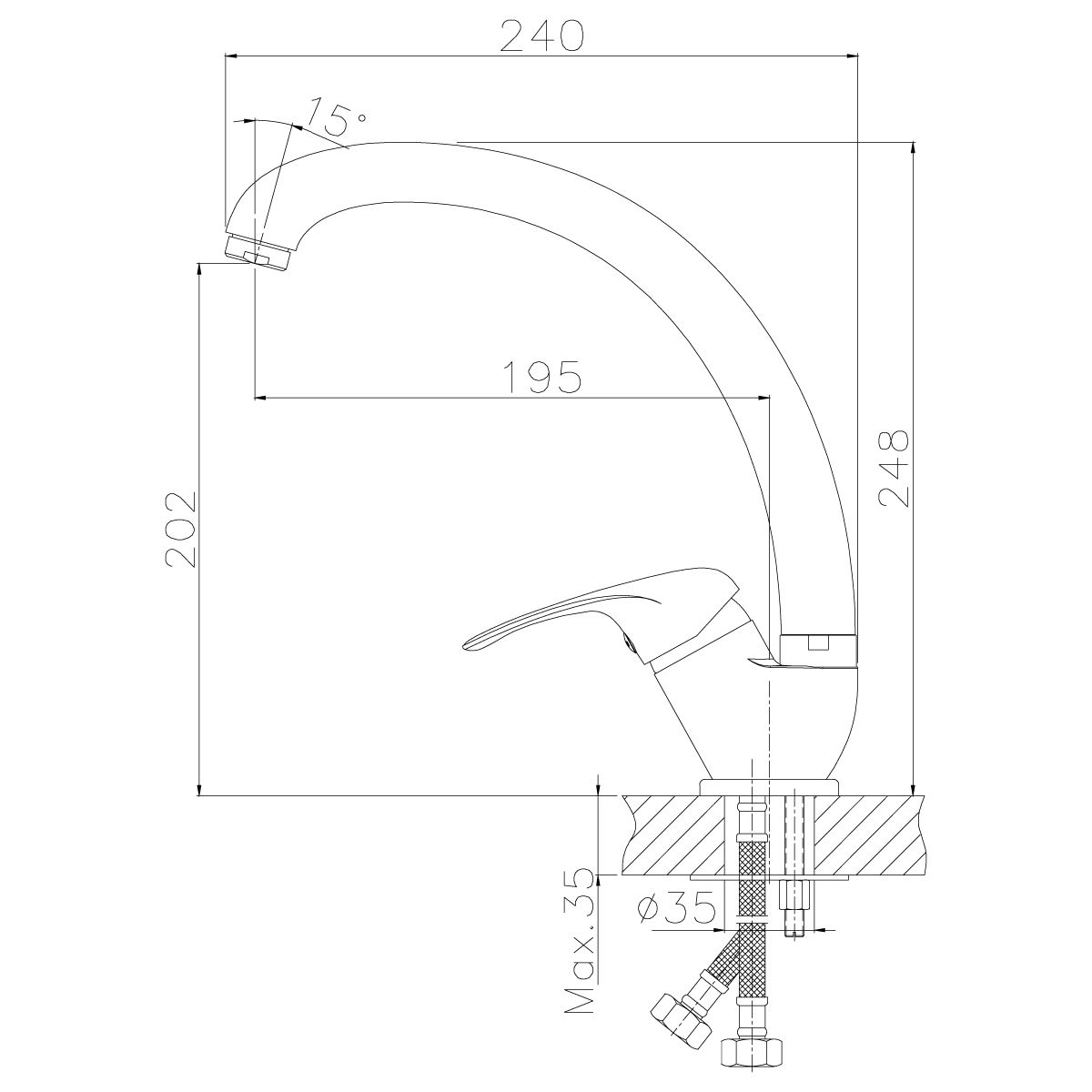 В комплекте:Пластиковый аэратор с функцией легкой очистки. Керамический картридж 35 мм. Гибкая подводка 35 см – 2 шт.. Присоединительная группа для горизонтального крепления. Металлическая рукоятка