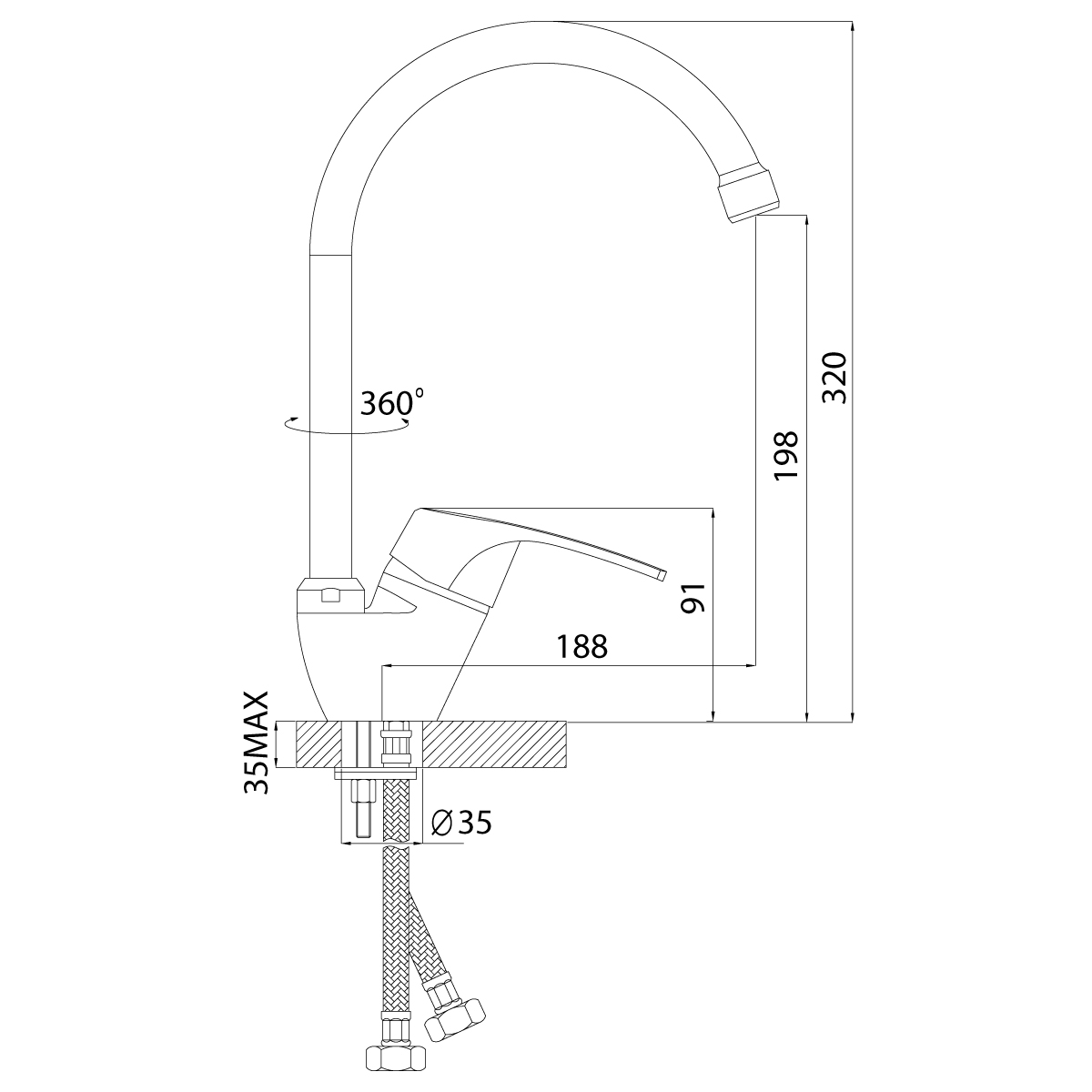 В комплекте:Пластиковый аэратор с функцией легкой очистки. Керамический картридж 40 мм. Гибкая подводка 30 см – 2 шт.. Присоединительная группа для горизонтального крепления. Металлическая рукоятка