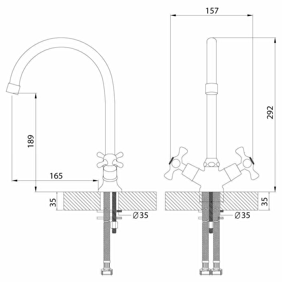 В комплекте:Пластиковый аэратор с функцией легкой очистки. Вентильные головки с резиновыми прокладками. Гибкая подводка 30 см – 2 шт.. Присоединительная группа для горизонтального крепления. Металлические рукоятки