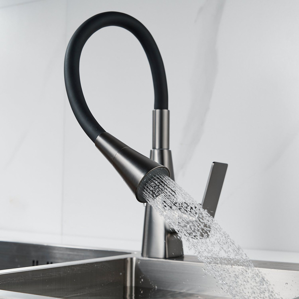 —Смеситель для кухни Shevanik S543T-3 на мойку черный/оружейная сталь
