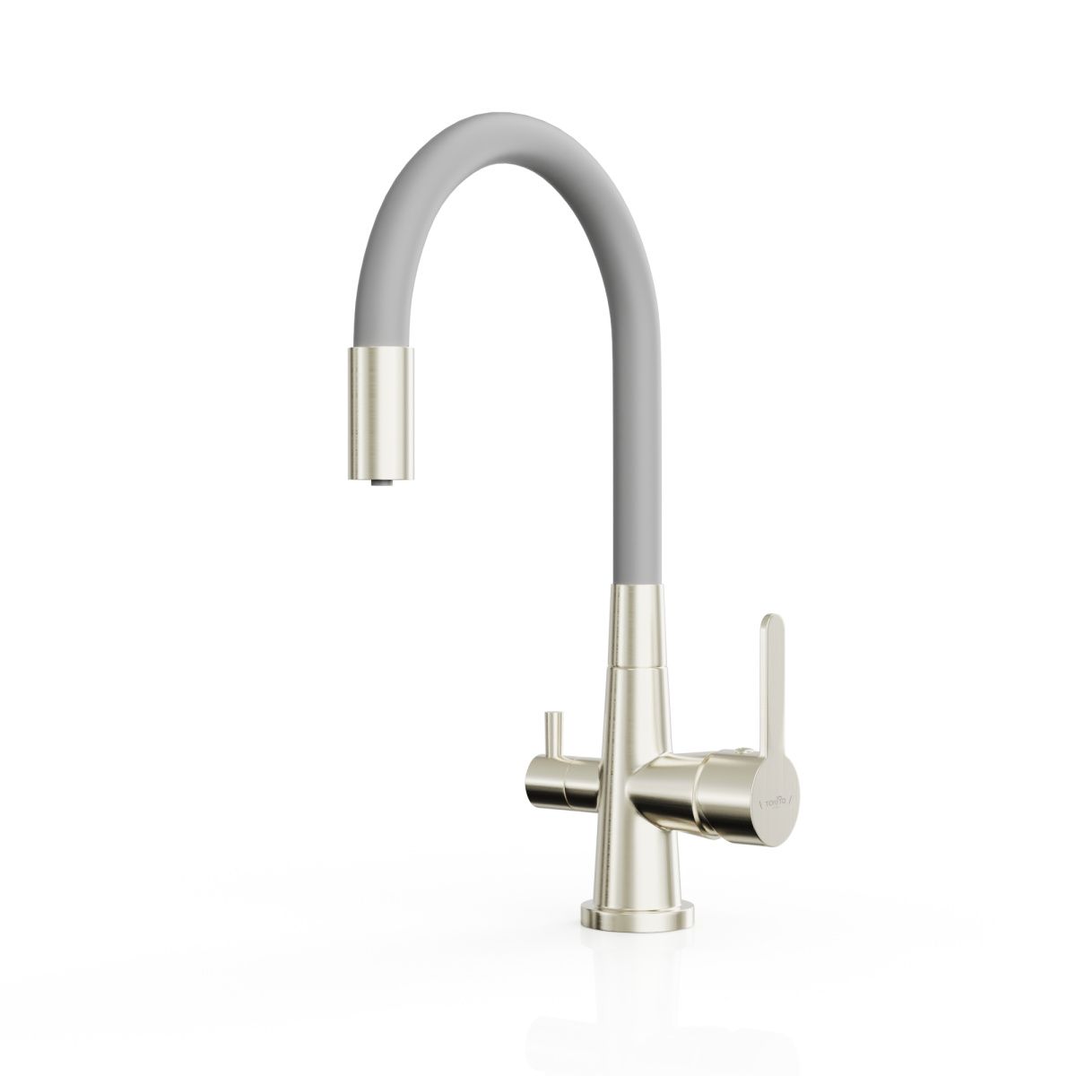 Гибкий излив в сером цвете – это не просто стиль, но и символ современной элегантности. Регулируемый угол наклона делает использование этого смесителя настоящим удовольствием. Готовьте и мойте с легкостью, наслаждаясь безупречным дизайном вашей кухни.