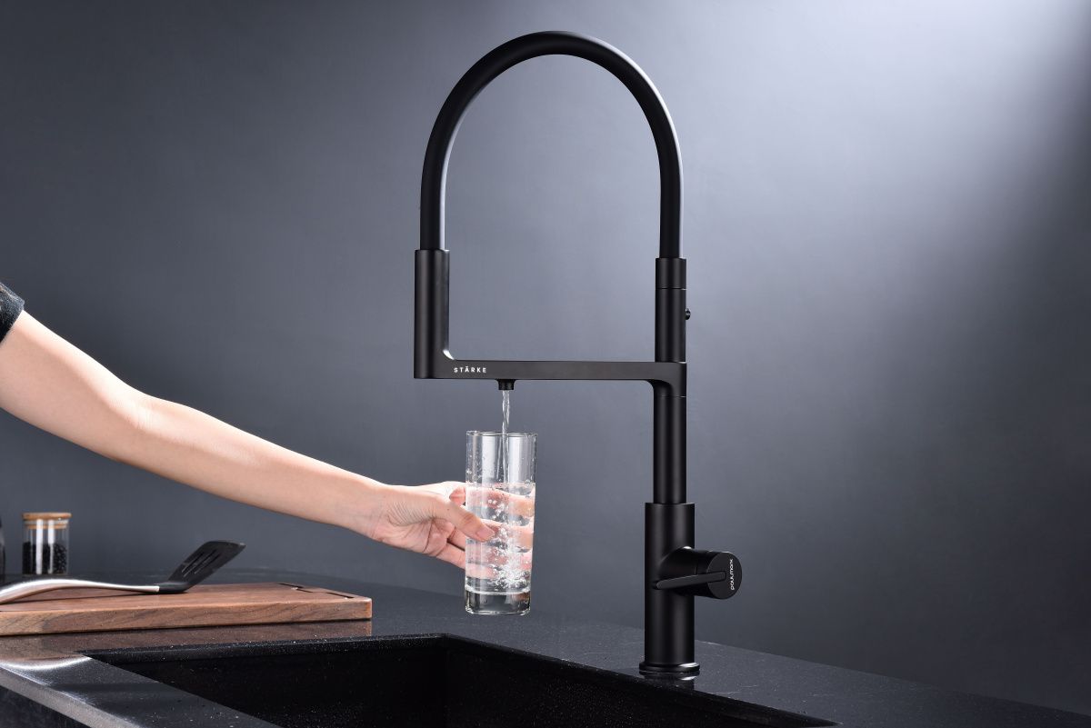 TORNADO оснащён функцией TRINKWASSER – в смесителе присутствует встроенный независимый канал для питьевой воды из фильтра, которая подается из отдельного аэратора на латунной части излива. Водопроводная вода подаётся из гибкого силиконового излива. Управление питьевой водой производится рычагом слева. Рычаг справа управляет подачей водопроводной воды. Совмещение подачи питьевой и водопроводной воды в одном смесителе избавляет от необходимости ставить дополнительный кран и позволяет сделать зону мойки максимально эстетичной.