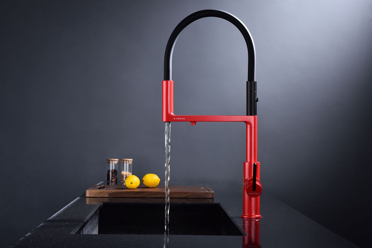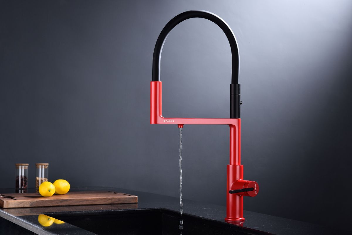 TORNADO оснащён функцией TRINKWASSER – в смесителе присутствует встроенный независимый канал для питьевой воды из фильтра, которая подается из отдельного аэратора на латунной части излива. Водопроводная вода подаётся из гибкого силиконового излива. Управление питьевой водой производится рычагом слева. Рычаг справа управляет подачей водопроводной воды. Совмещение подачи питьевой и водопроводной воды в одном смесителе избавляет от необходимости ставить дополнительный кран и позволяет сделать зону мойки максимально эстетичной.