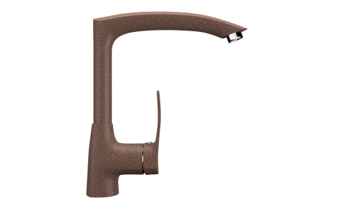 ULGRAN U-005  - оригинальный кухонный смеситель с высоким поворотным изливом. Материал корпуса выполнен из высококачественной латуни, а окрашивание под "искусственный камень" в цвет мойки ULGRAN выполняется на собственном производстве, что позволяет идеально попасть в фирменный цвет ULGRAN. В качестве керамического картриджа используется известный бренд Wanhai диаметром 40 мм с высокой пропускной способностью в 500 тысяч циклов "открывания-закрывания".  На подвижные части картриджа  Wanhai  нанесена специальная невымываемая силиконовая смазка, а керамические пластины изготовлены из 96% оксида алюминия, что, в сочетании с высоким качеством шлифовки обеспечивает долговечность, надежность, плавность хода рукоятки.  Смеситель оборудован съемным пластиковым аэратором для экономии воды  и поворотным изливом на 360 градусов. В комплектацию входят:  керамический картридж  Wanhai, гибкая подводка 450 мм, комплект крепежных элементов, технический паспорт и гарантийный талон.   Заводская гарантия составляет 3 года на материал корпуса,  1 год на комплектующие к смесителю и 1 год на материал покрытия.