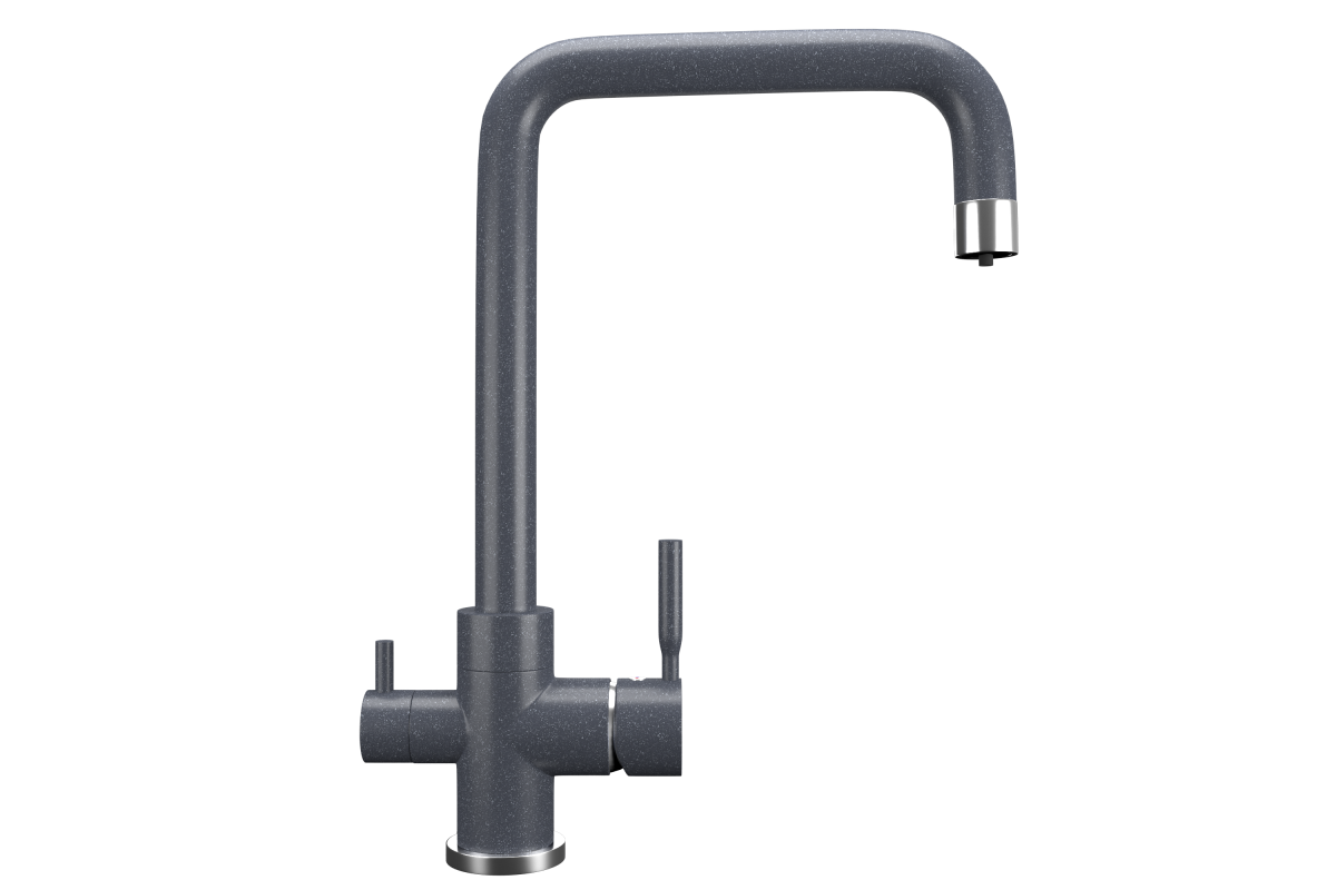 ULGRAN U-019 - современный кухонный смеситель с дополнительным краном для подключения фильтрованной воды, оснащенный кран-буксой с керамическими пластинами. Реализован тройной подвод воды через один излив: холодная, горячая и фильтрованная. Переход с одного подвода на другой производится поворотом рычага. Набор для соединения с фильтром входит в комплект . Система фильтрации приобретается дополнительно и монтируется под мойку, специальный индикатор сообщает о необходимости замены картриджа. Материал корпуса выполнен из высококачественной латуни, а окрашивание под "искусственный камень" в цвет мойки ULGRAN выполняется на собственном производстве, что позволяет идеально попасть в фирменный цвет ULGRAN. В качестве керамического картриджа используется известный бренд Wanhai диаметром 35 мм с высокой пропускной способностью в 500 тысяч циклов "открывания-закрывания".  На подвижные части картриджа  Wanhai  нанесена специальная невымываемая силиконовая смазка, а керамические пластины изготовлены из 96% оксида алюминия, что, в сочетании с высоким качеством шлифовки обеспечивает долговечность, надежность, плавность хода рукоятки.  Смеситель оборудован съемным пластиковым аэратором для экономии воды  и поворотным изливом на 360 градусов. В комплектацию входя:  керамический картридж  Wanhai, гибкая подводка, комплект крепежных элементов,  кран-букса с керамическими пластинами для дополнительного излива для фильтрованной воды, набор для подсоединения фильтра питьевой воды (гибкая подводка + переходник-цанга), технический паспорт и гарантийный талон. Заводская гарантия составляет 3 года на материал корпуса, 1 год на комплектующие к смесителю и 1 год на материал покрытия.