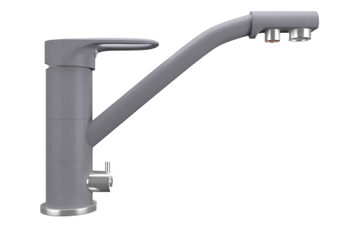 ULGRAN Quartz UQ-010 - высокоэргономичный кухонный смеситель с дополнительным краном для подключения фильтрованной воды, оснащенный кран-буксой с керамическими пластинами. Реализован тройной подвод воды через один излив: холодная, горячая и фильтрованная. Переход с одного подвода на другой производится поворотом рычага. Набор для соединения с фильтром входит в комплект . Система фильтрации приобретается дополнительно и монтируется под мойку, специальный индикатор сообщает о необходимости замены картриджа. Материал корпуса выполнен из высококачественной латуни, а окрашивание под "искусственный камень" в цвет мойки ULGRAN Quartz выполняется на собственном производстве, что позволяет идеально попасть в фирменный цвет ULGRAN Quart. В качестве керамического картриджа используется известный бренд Wanhai диаметром 35 мм с высокой пропускной способностью в 500 тысяч циклов "открывания-закрывания".  На подвижные части картриджа  Wanhai  нанесена специальная невымываемая силиконовая смазка, а керамические пластины изготовлены из 96% оксида алюминия, что, в сочетании с высоким качеством шлифовки обеспечивает долговечность, надежность, плавность хода рукоятки.  Смеситель оборудован съемным пластиковым аэратором для экономии воды  и поворотным изливом на 360 градусов. В комплектацию входя:  керамический картридж  Wanhai, гибкая подводка, комплект крепежных элементов,  кран-букса с керамическими пластинами для дополнительного излива для фильтрованной воды, набор для подсоединения фильтра питьевой воды (гибкая подводка + переходник-цанга), технический паспорт и гарантийный талон. Заводская гарантия составляет 3 года на материал корпуса, 1 год на комплектующие к смесителю и 1 год на материал покрытия.