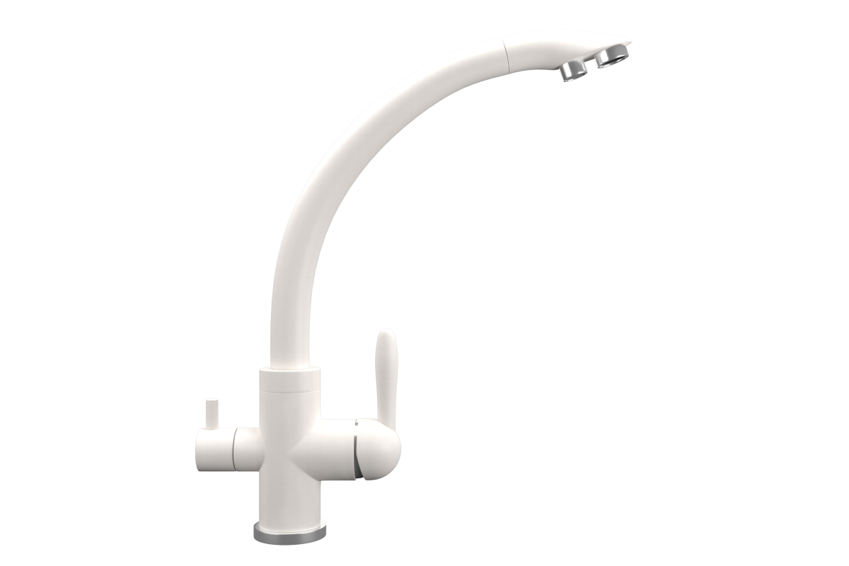 ULGRAN Quartz UQ-017 - современный кухонный смеситель с дополнительным краном для подключения фильтрованной воды, оснащенный кран-буксой с керамическими пластинами. Реализован тройной подвод воды через один излив: холодная, горячая и фильтрованная. Переход с одного подвода на другой производится поворотом рычага. Набор для соединения с фильтром входит в комплект . Система фильтрации приобретается дополнительно и монтируется под мойку, специальный индикатор сообщает о необходимости замены картриджа. Материал корпуса выполнен из высококачественной латуни, а окрашивание под "искусственный камень" в цвет мойки ULGRAN Quartz выполняется на собственном производстве, что позволяет идеально попасть в фирменный цветULGRAN Quartz. В качестве керамического картриджа используется известный бренд Wanhai диаметром 35 мм с высокой пропускной способностью в 500 тысяч циклов "открывания-закрывания".  На подвижные части картриджа  Wanhai  нанесена специальная невымываемая силиконовая смазка, а керамические пластины изготовлены из 96% оксида алюминия, что, в сочетании с высоким качеством шлифовки обеспечивает долговечность, надежность, плавность хода рукоятки.  Смеситель оборудован съемным пластиковым аэратором для экономии воды  и поворотным изливом на 360 градусов. В комплектацию входя:  керамический картридж  Wanhai, гибкая подводка, комплект крепежных элементов,  кран-букса с керамическими пластинами для дополнительного излива для фильтрованной воды, набор для подсоединения фильтра питьевой воды (гибкая подводка + переходник-цанга), технический паспорт и гарантийный талон. Заводская гарантия составляет 3 года на материал корпуса, 1 год на комплектующие к смесителю и 1 год на материал покрытия.