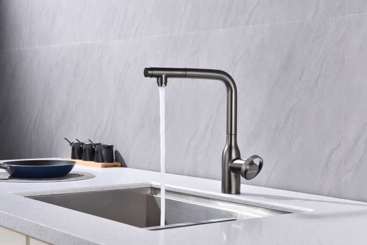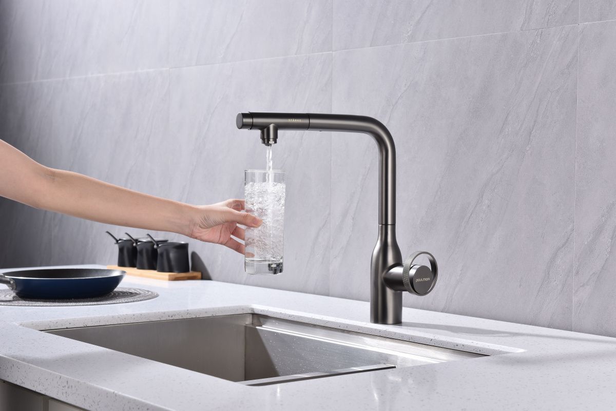 Смеситель Urban имеет отдельный канал для питьевой воды. Переключение режимов осуществляется с помощью удобной и эргономично расположенной кнопки. Благодаря такому функционалу, потоки воды не смешиваются, а переключение осуществляется максимально комфортно.