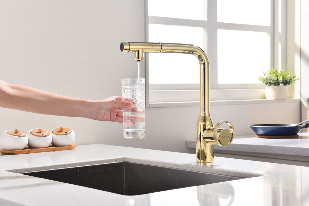 Смеситель Urban имеет отдельный канал для питьевой воды. Переключение режимов осуществляется с помощью удобной и эргономично расположенной кнопки. Благодаря такому функционалу, потоки воды не смешиваются, а переключение осуществляется максимально комфортно.