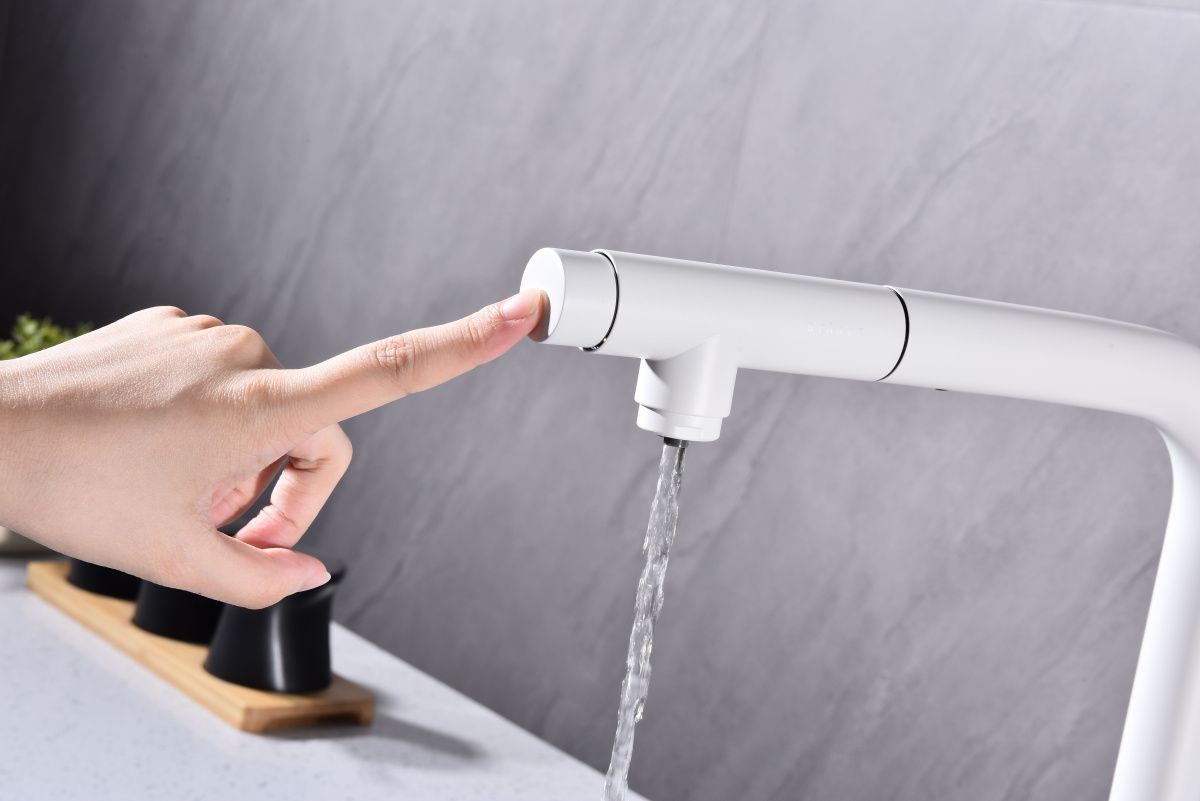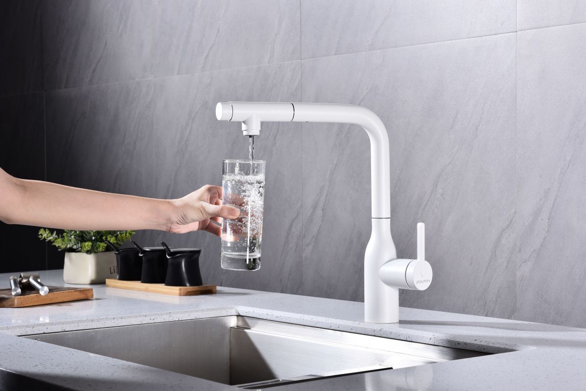 Смеситель VIPER имеет отдельный канал для питьевой воды. Переключение режимов осуществляется с помощью удобной и эргономично расположенной кнопки. Благодаря такому функционалу, потоки воды не смешиваются, а переключение осуществляется максимально комфортно.