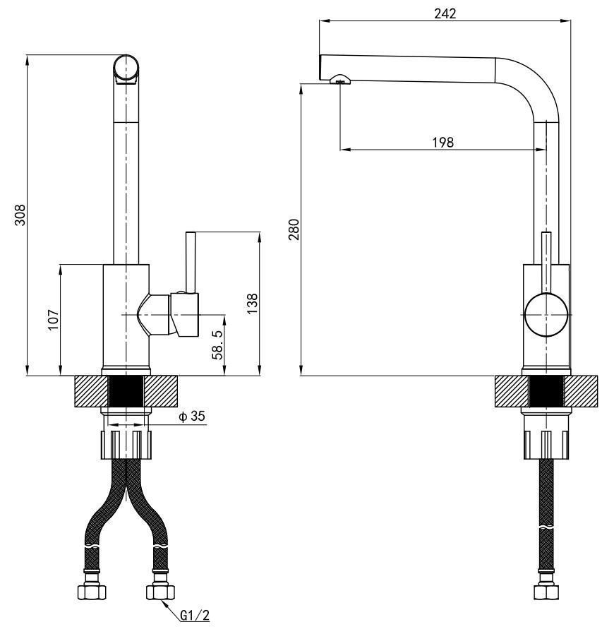 —Смеситель для кухни Voda K18GM на мойку вороненая сталь