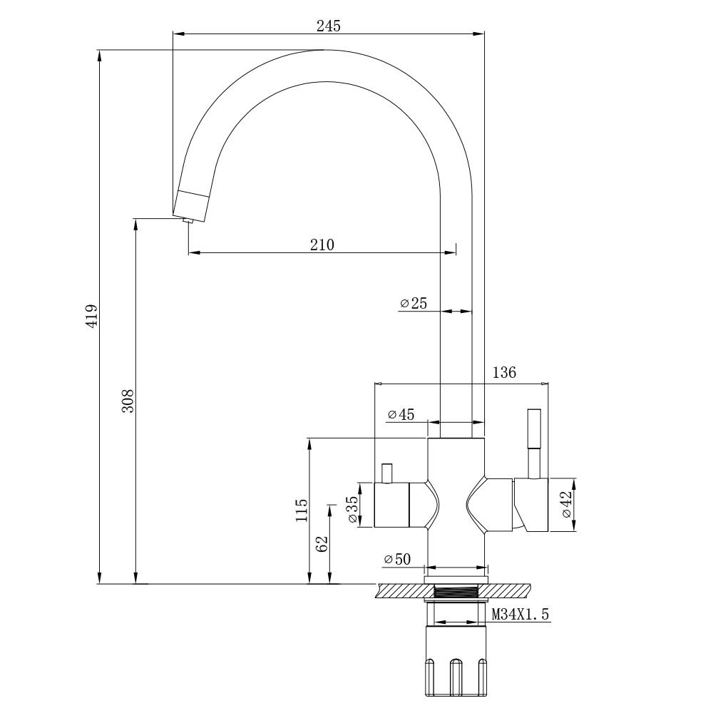 Смеситель изготовлен из нержавеющей стали SUS304. Данный материал отличается особой прочностью, износостойкостью и гигиеничностью. 0% Pb – нержавеющая сталь не содержит свинец, является экологически чистым материалом.