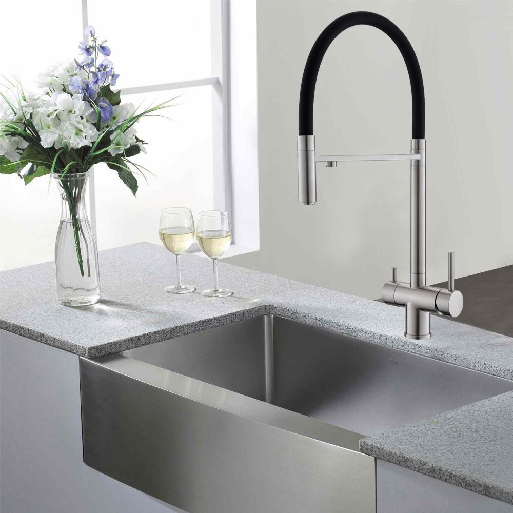 Смеситель изготовлен из нержавеющей стали SUS304. Данный материал отличается особой прочностью, износостойкостью и гигиеничностью. 0% Pb – нержавеющая сталь не содержит свинец, является экологически чистым материалом.