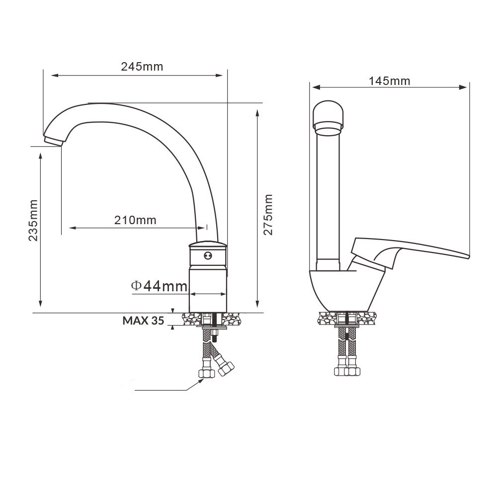 Хромированное покрытие Mirror shine обеспечивает прочное сцепление с материалом смесителя и гарантируя долгий срок службы и легкий уход.