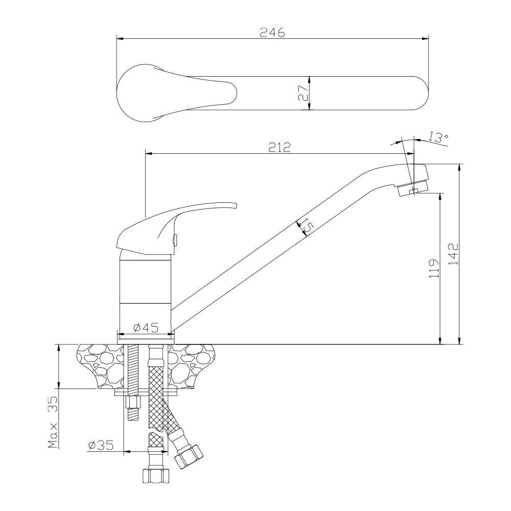 Хромированное покрытие Mirror shine обеспечивает прочное сцепление с материалом смесителя и гарантируя долгий срок службы и легкий уход.