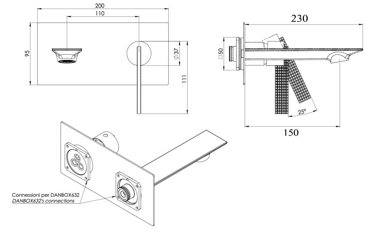 —Смеситель для раковины Daniel Club ANC632LKBCF встраиваемый в стену черный