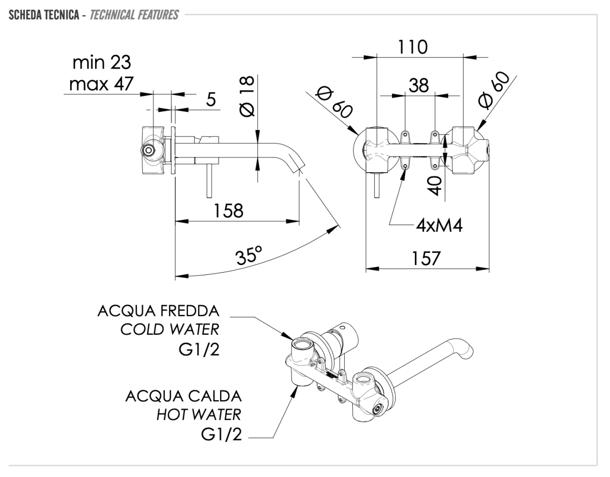 —Смеситель для раковины Remer X Style X15PDO встраиваемый в стену золото