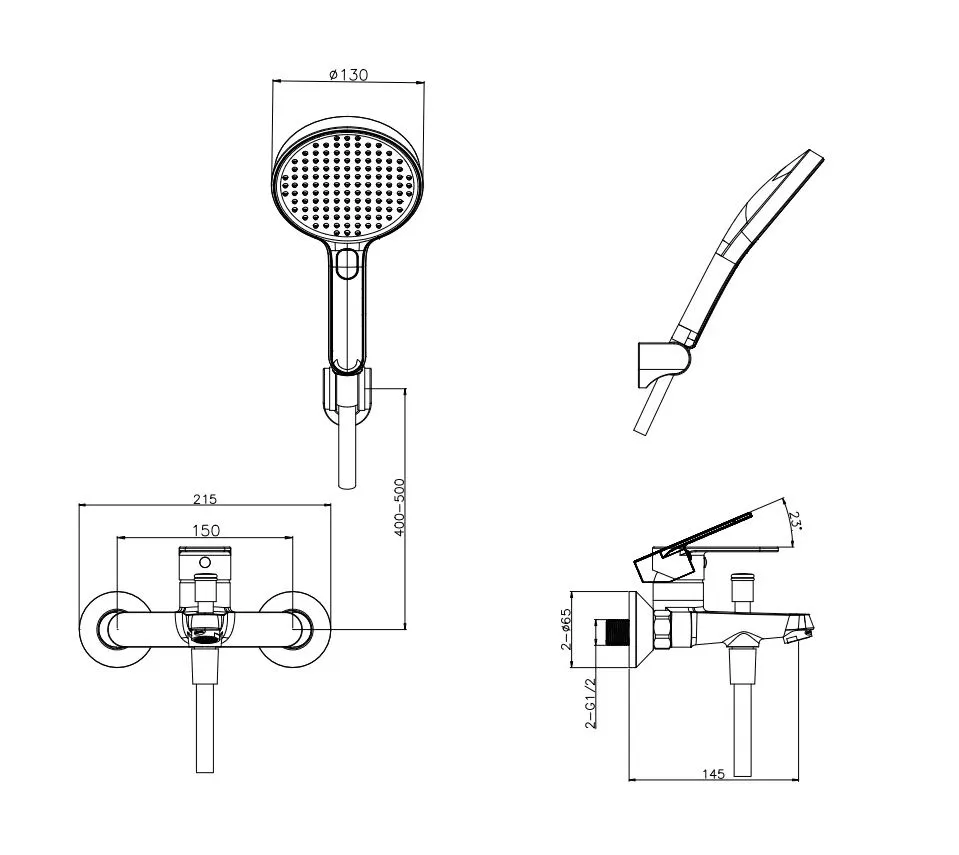 настенный держатель, шланговое подключение, излив, душевой гарнитур, смеситель для ванны с душем