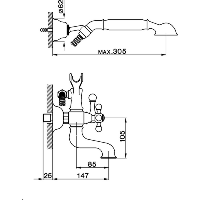 Смеситель для ванны Cisal Arcana AC00012027 настенный бронза