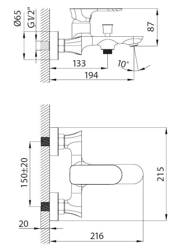 —Смеситель для ванны Creavit PR2500 настенный хром