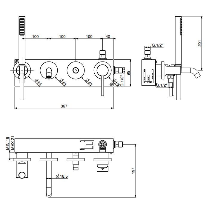 —Смеситель для ванны Gattoni CIRCLE TWO 9105/91NS встраиваемый в стену никель