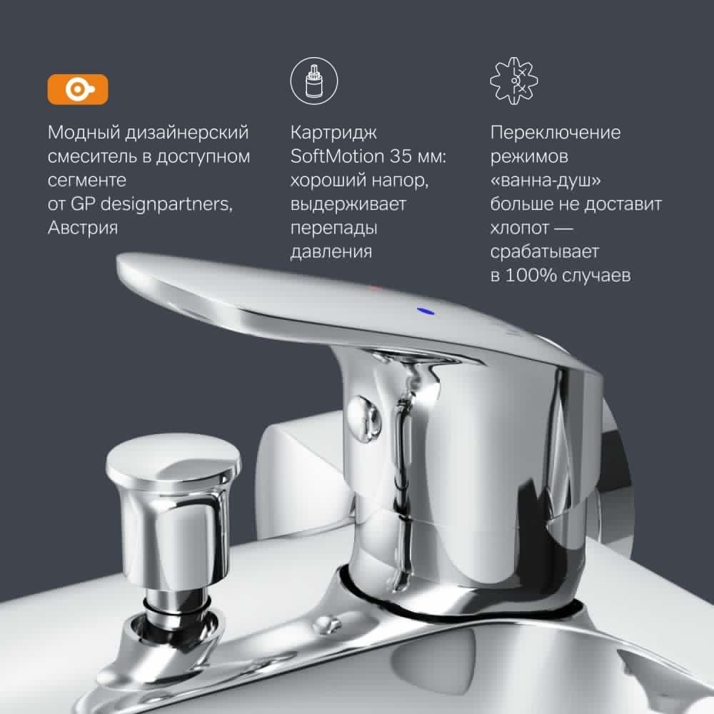 Переключение режимов «ванна-душ» больше не доставит хлопот: идеальное сочетание пневматического переключения с механическим срабатывает безукоризненно в 100% случаев даже при низком напоре воды.