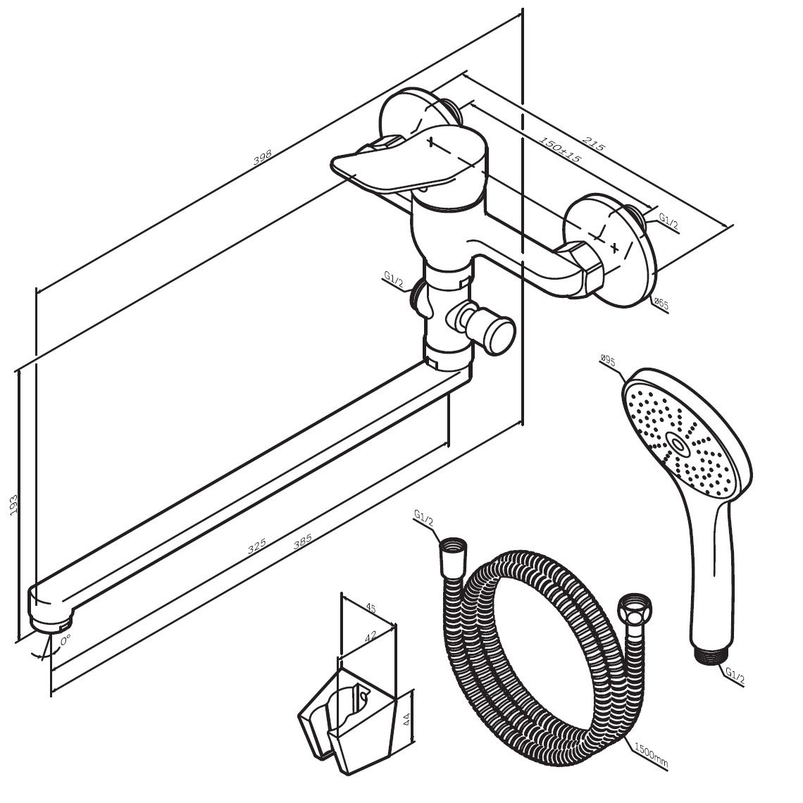 Функциональный держатель для ручного душа на два положения добавит удобства использования. Душевой шланг длиной 150 см позволит наслаждаться душем даже высокому человеку. Максимум функций за разумную плату в одном изделии!