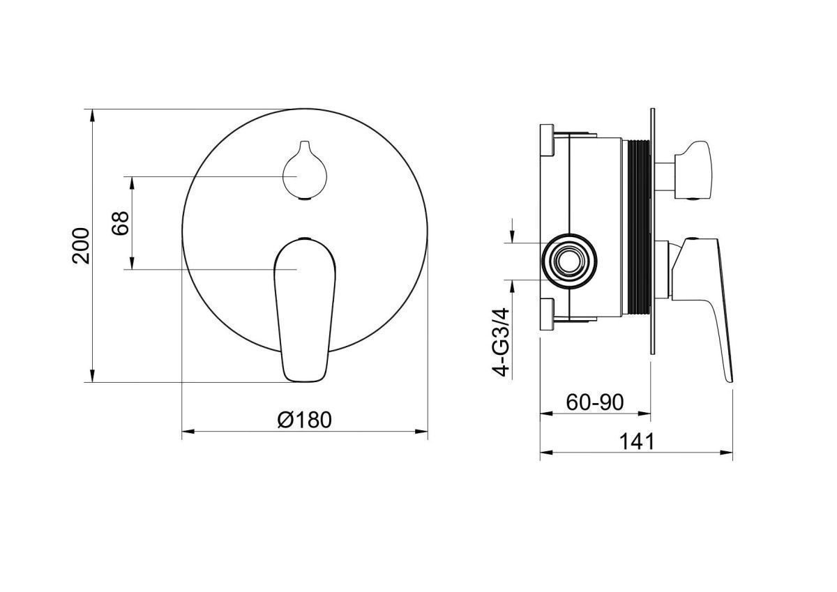 —Смеситель для душа Aquatek БЕТТА AQ1146CR встраиваемый в стену хром