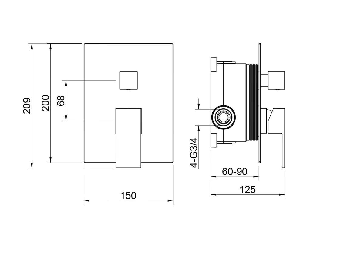 —Смеситель для ванны Aquatek ЛИБРА AQ1646CR встраиваемый в стену хром