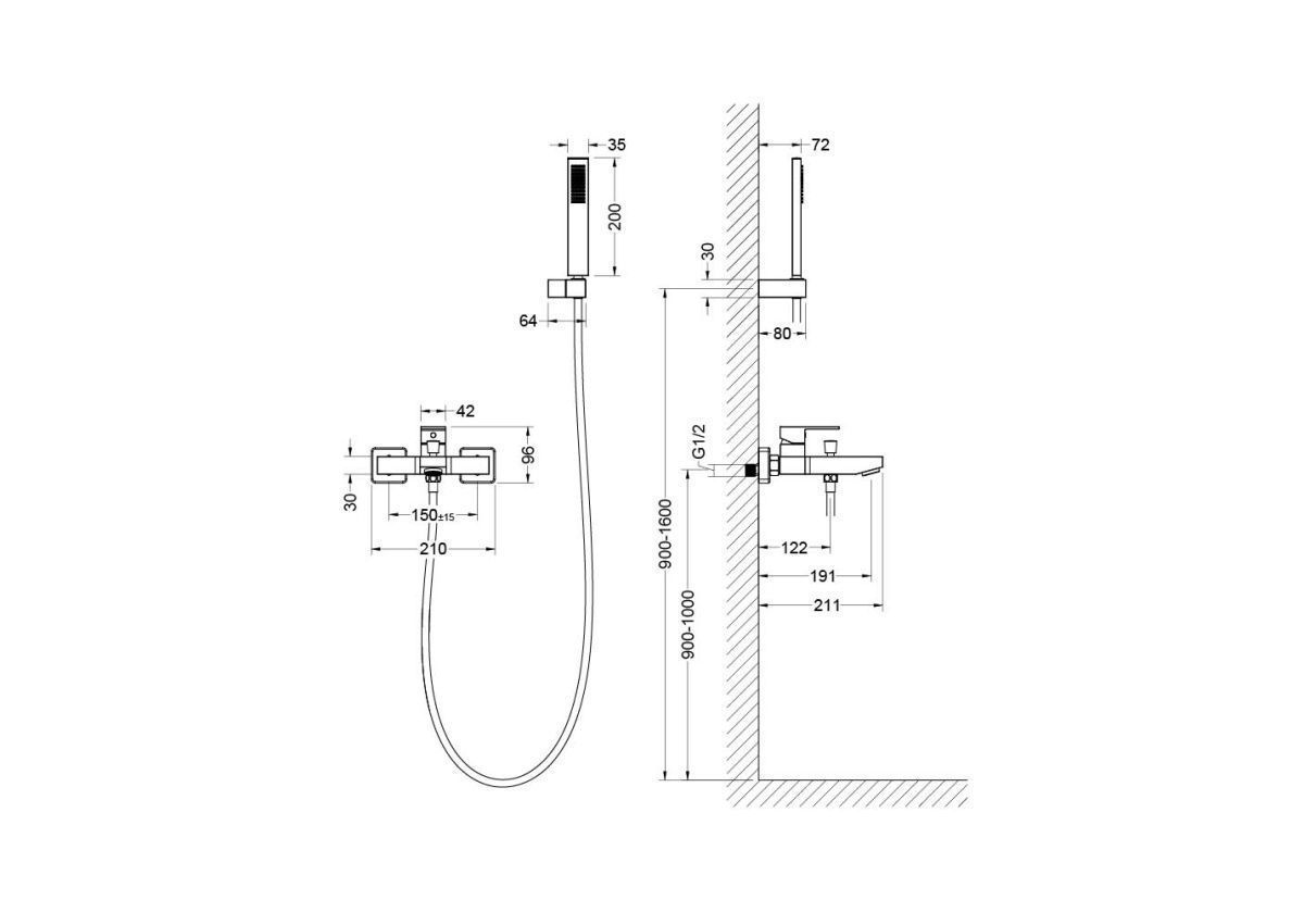 —Смеситель для ванны Aquatek ЛИБРА AQ1649CR настенный хром