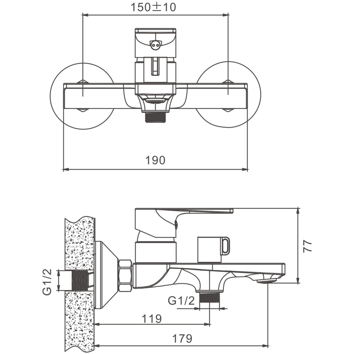 —Смеситель для ванны и душа BELZ B60679 настенный хром