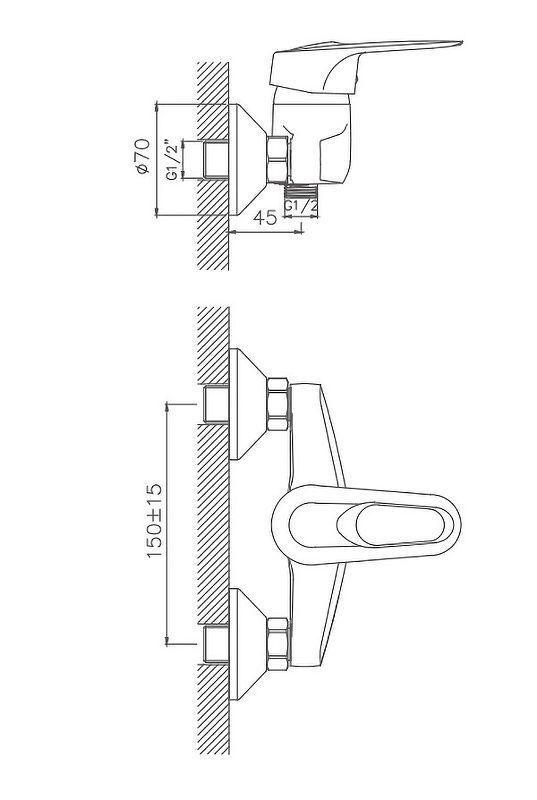 Керамический картридж 40 мм. Смеситель изготовлен из металлического сплава. Диаметр декоративных чашек 70 мм. Душевой гарнитур в комплекте. Межосевое расстояние (расстояние между выходом горячей и холодной трубы) 150 мм. Данное расстояние изменяется за счет входящих в комплект эксцентриков на 15 мм. в большую или меньшую стороны. Цвет хром.
