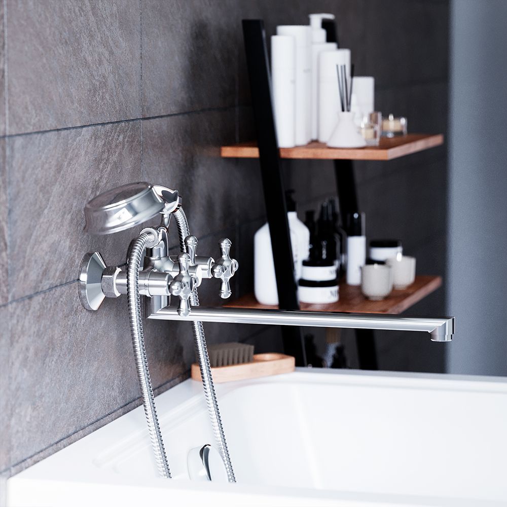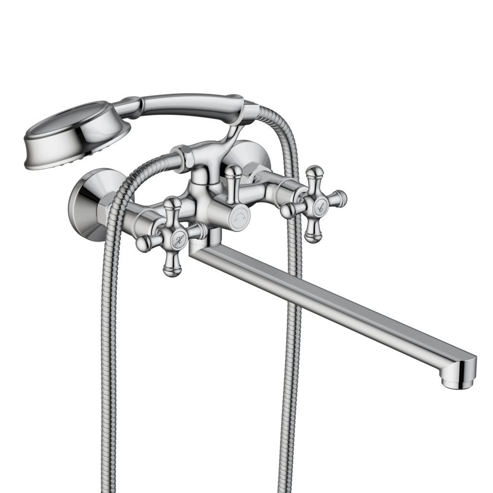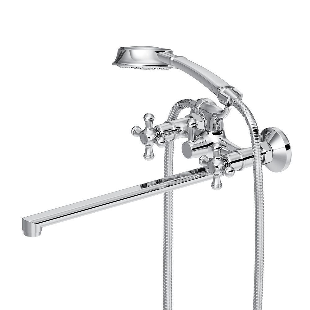 Прекрасный вариант для ценителей классического дизайна. Традиционные вентильные ручки стильно смотрятся и имеют керамические кран-буксы  ручки с поворотом на 180°. Длинный поворотный излив можно использовать для многих бытовых нужд. Керамический картридж Light Flow обеспечивает плавное управление ручкой смесителя и оптимальную регулировку температуры воды и мощности потока. В комплект входит душевой гарнитур.