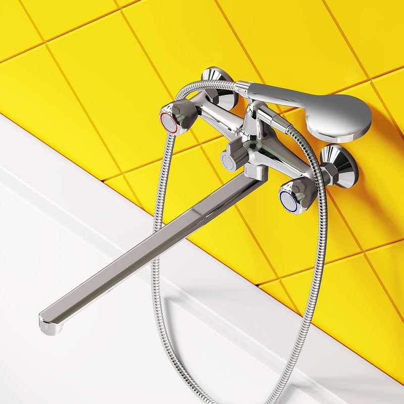 Универсальный длинный излив позволяет использовать смеситель как для ванны так и для рядом стоящей раковины. Функциональный держатель для ручного душа на два положения добавит удобства использования. Душевой шланг длиной 150 см позволит наслаждаться душем даже высокому человеку.