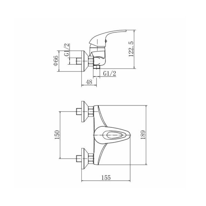 —Смеситель для ванны и душа Fashun A2003 настенный хром
