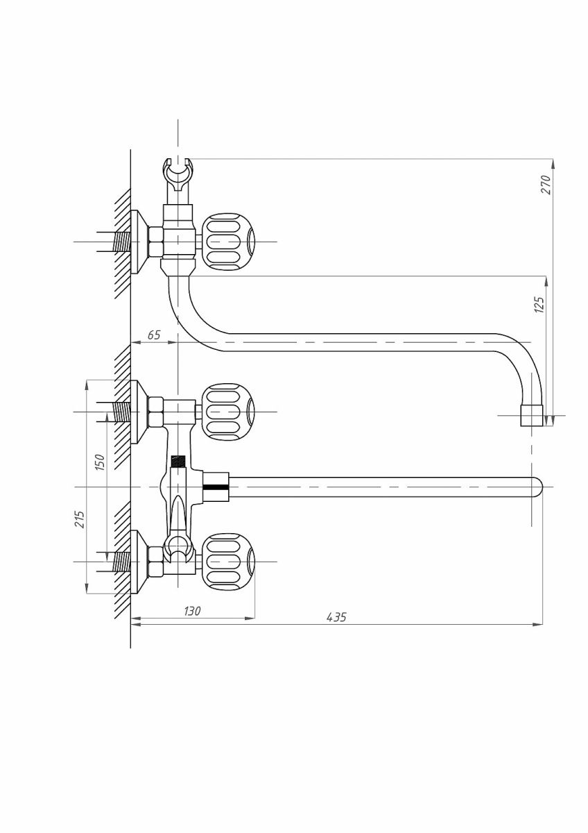 —Смеситель для ванны и душа FAUZT FZs-435-21 настенный хром