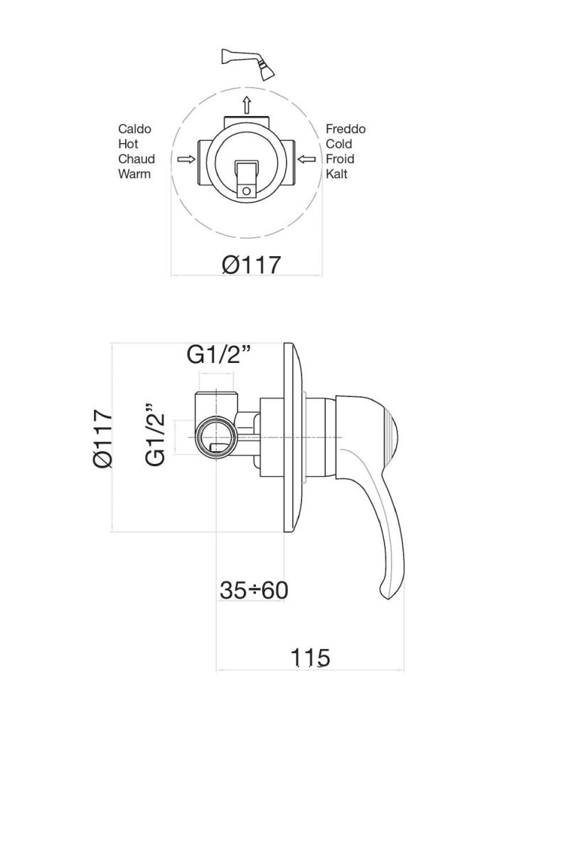 Смеситель для душа Fiore встраиваемый. На 1 поток.