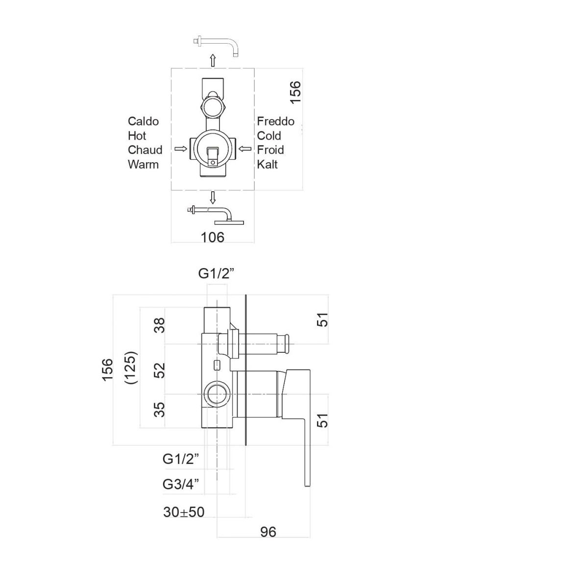 Смеситель для душа Fiore встраиваемый. На 2 потока.