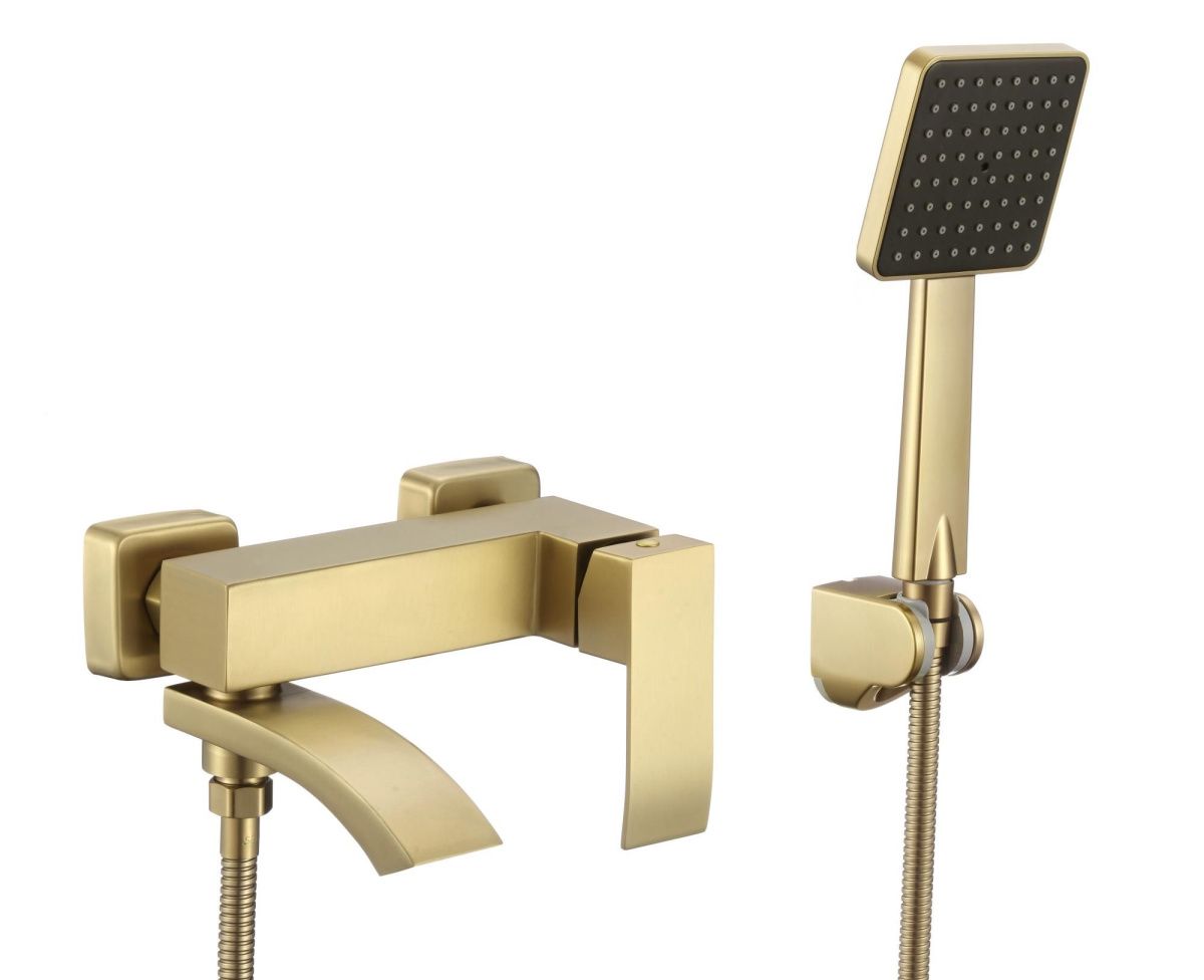 Смеситель для ванны и душа Fmark FS8624-1C настенный золото матовое
