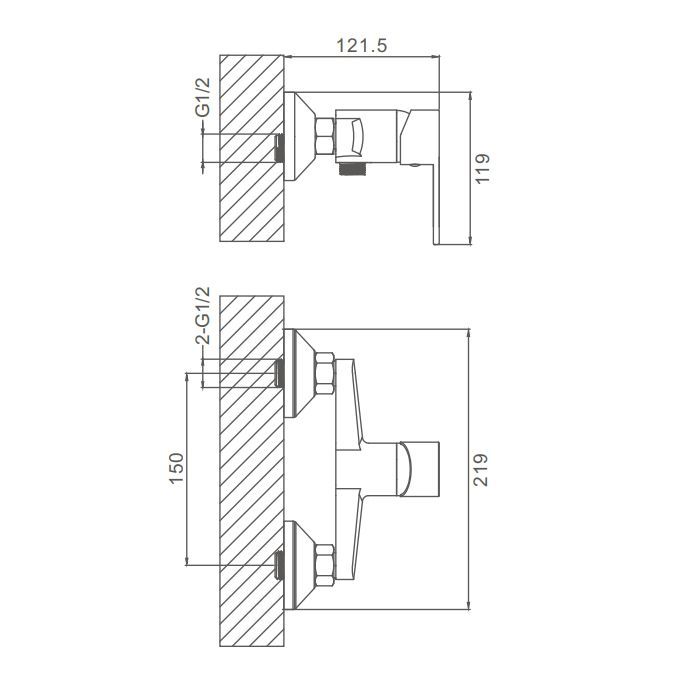 —Смеситель для ванны и душа ProHanss P64.20 настенный хром