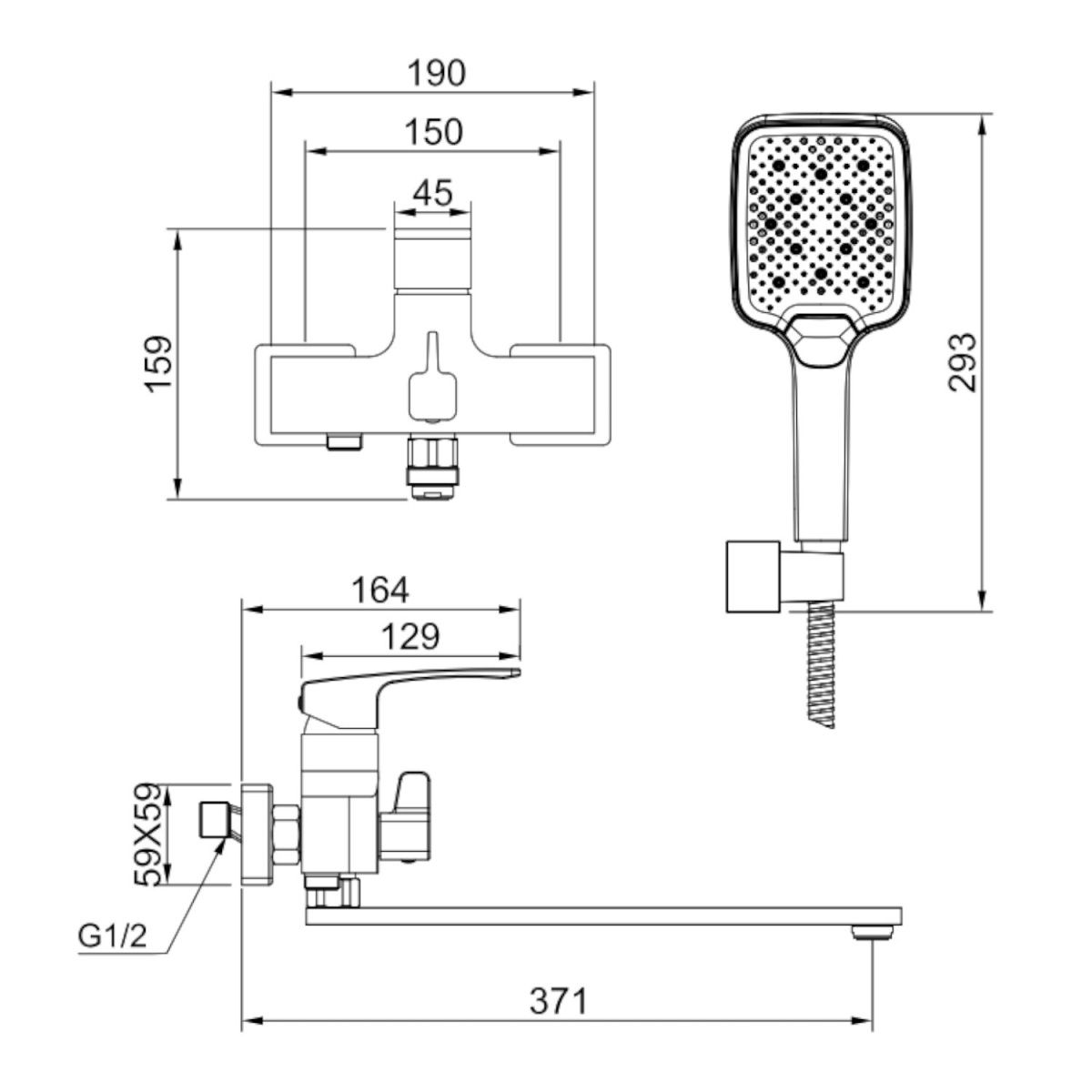 —Смеситель для ванны и душа Raglo R01 R01.22 настенный хром