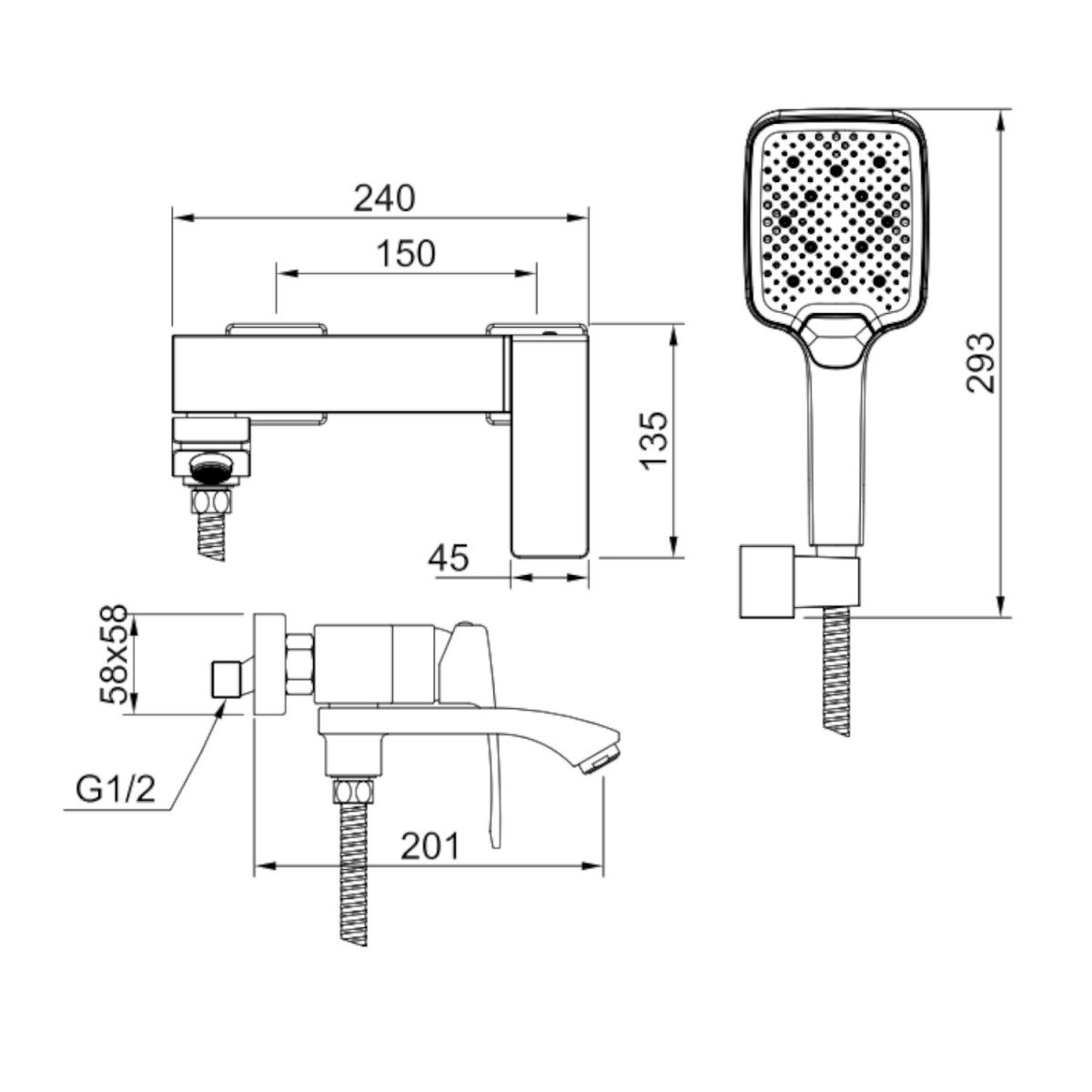 —Смеситель для ванны и душа Raglo R01 R01.30.09 настенный графит