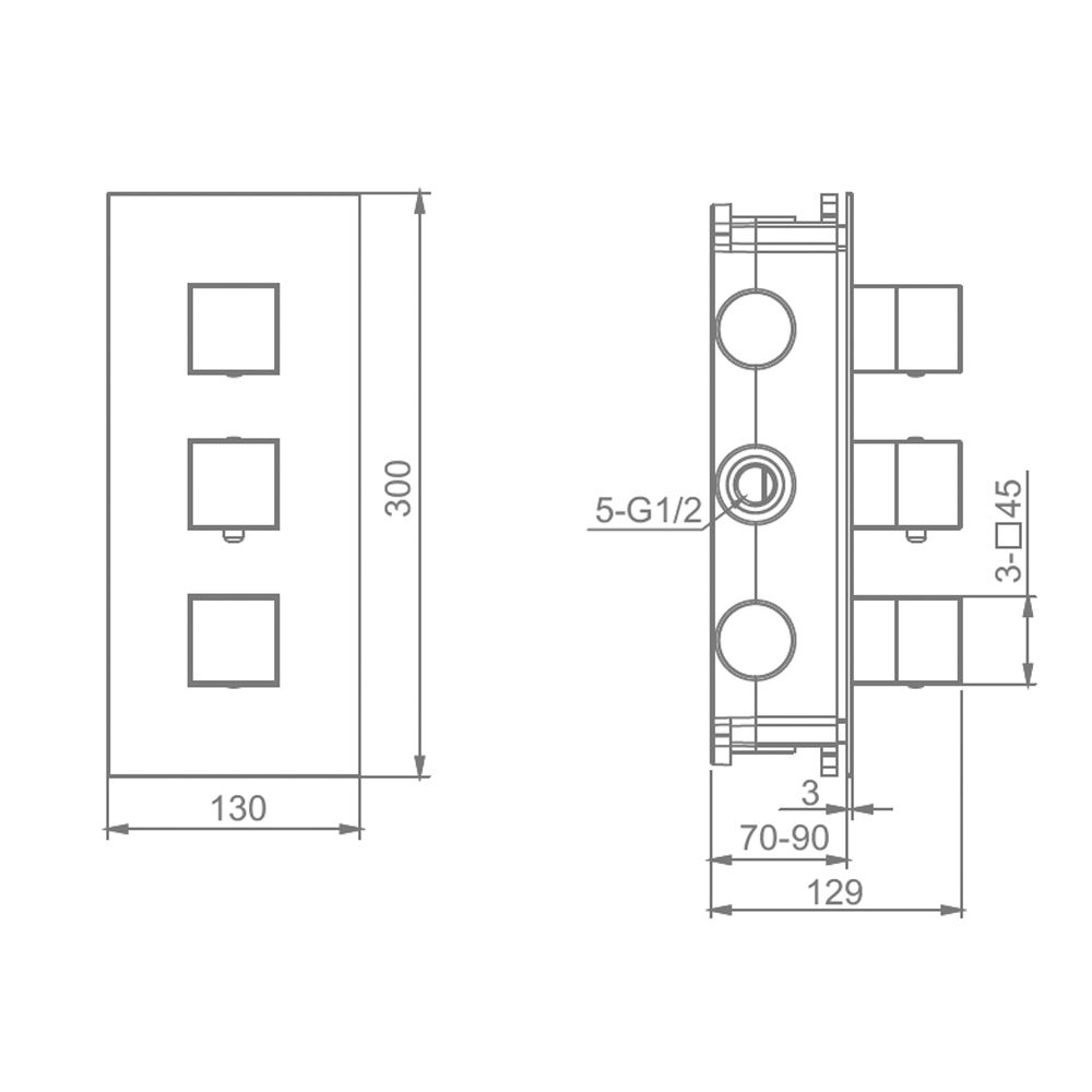 Корпус смесителя + внутренняя часть Raglo R02.263.09, 3-режима, графит. Встраиваемый монтаж. Термостатический картридж. Управление вентильное.