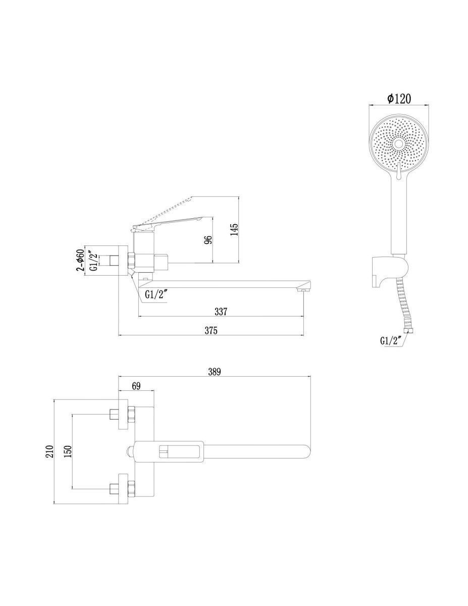 —Смеситель для ванны и душа Savol S-009024C настенный золото