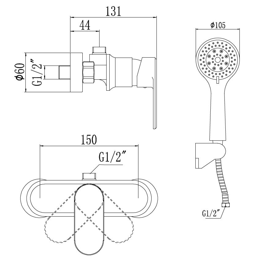 —Смеситель для ванны и душа Savol S-600305S настенный хром