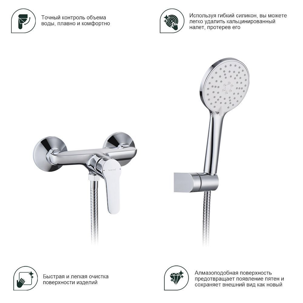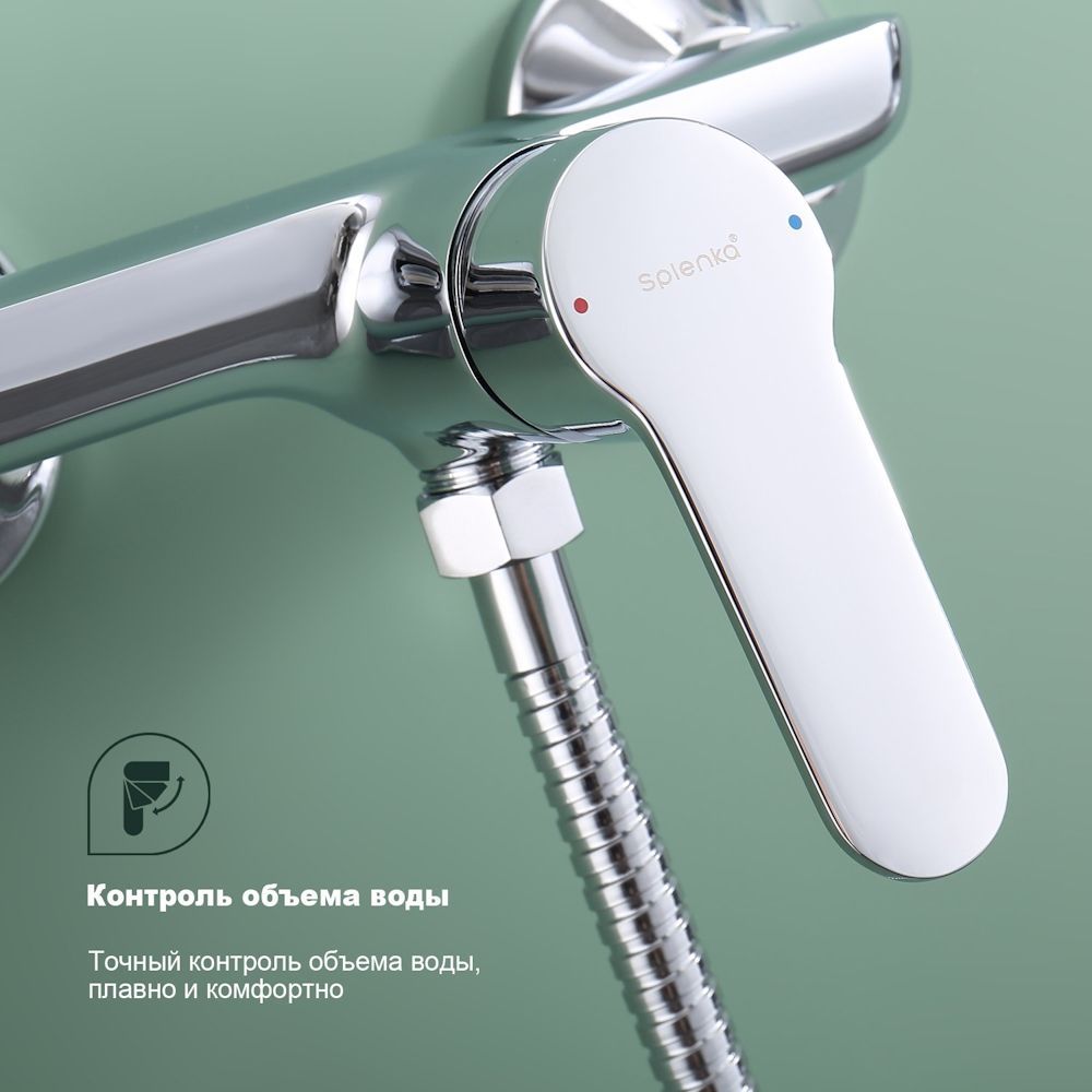 Смеситель для душа SPLENKA S07.20. Цвет - хром. Материал - латунь. Керамический картридж 35мм. Душевой шланг 150 см. Душевая лейка с 3 режимами. В комплекте эксцентрики с отражателями, держатель лейки.