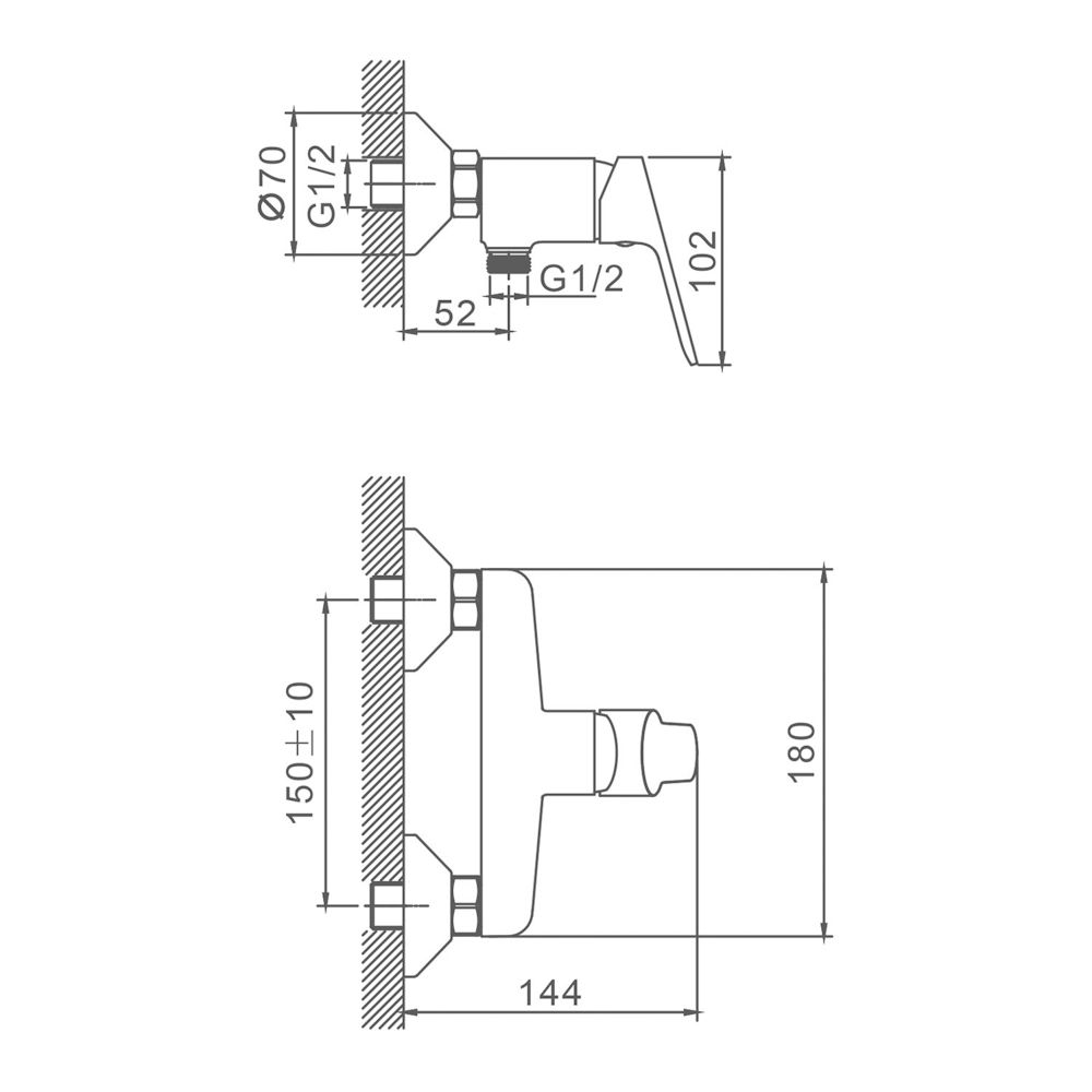 —Смеситель для ванны и душа Splenka S07.20 настенный хром